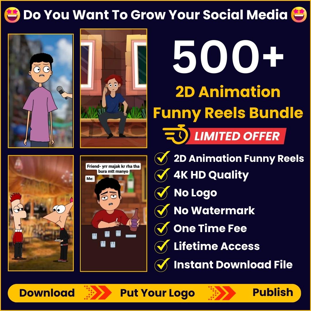 โœ… Get 500+ 2D Animation Funny ๐Ÿคฃ Readymade Reel Bundle